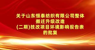 關(guān)于山東恒泰紡織有限公司整體搬遷升級改造 (二期)技改項(xiàng)目環(huán)境影響報告表的批復(fù)